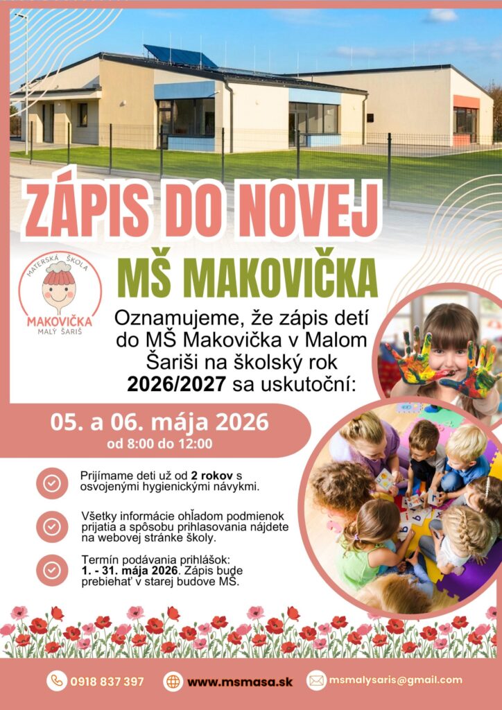Na zápis 5 a 6.mája 2026, ktorý sa uskutoční v starých priestoroch MŠ (oproti novostavbe) prineste vytlačenú prihlášku